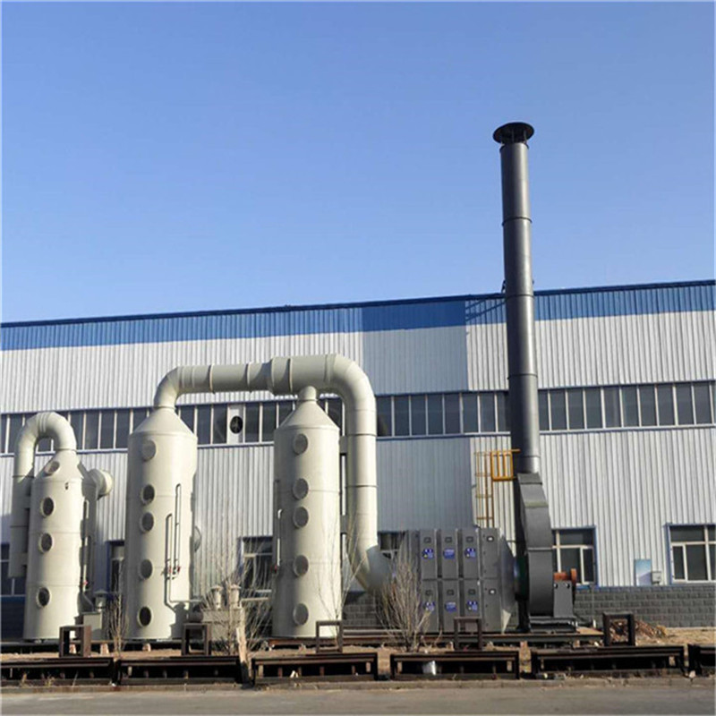 常州废气治理锻钢炉烟气通过换热降温至≤200℃,通过烟道从塔底进入脱硫塔。在脱硫塔内布置几层几十个喷嘴,在脱硫塔溶解积处喷洒细液滴雾化。烟气与喷洒脱硫液充分混合接触,使烟气中的SO2和灰尘被脱硫液充分吸收和反应,达到除尘和SO2的目的。脱硫洗涤后的净烟气通过塔顶除雾器脱水,通过脱硫塔上部进入烟囱,排入大气。脱硫循环液通过塔内气液接触SO2后,灰尘通过塔底管道流入沉淀池沉淀,清液通过上部溢入反应再生池,与石灰乳液制备槽引起的石灰乳液在池内进行再生反应。再生液流入泵前循环槽,加入NA2CO3,泵进入脱硫塔顶,去除SO2。再生CASO3和烟气中过量氧气产生的CASO4在沉淀池中沉淀分离。